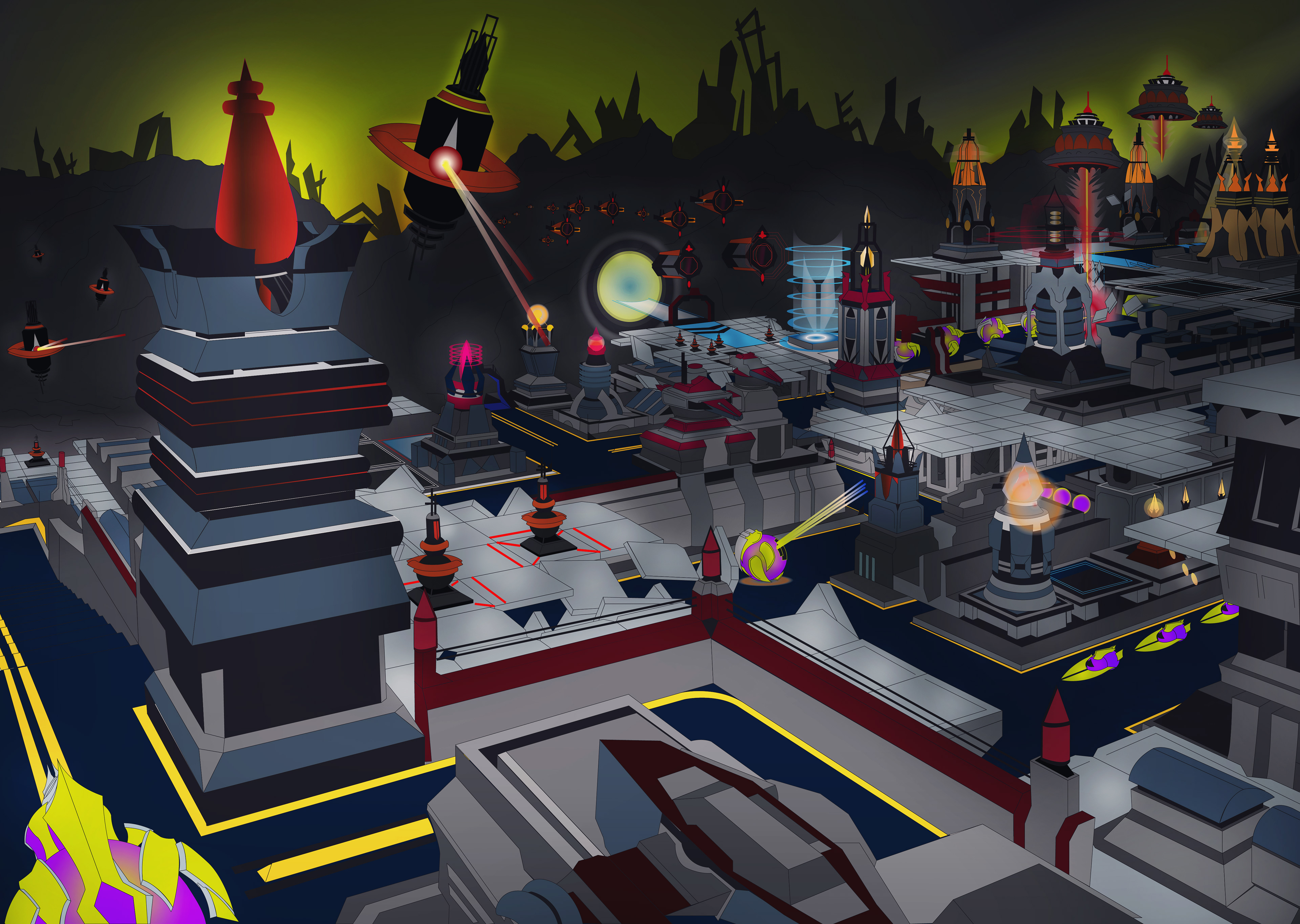 three groups of style frames for the tower defence game genre